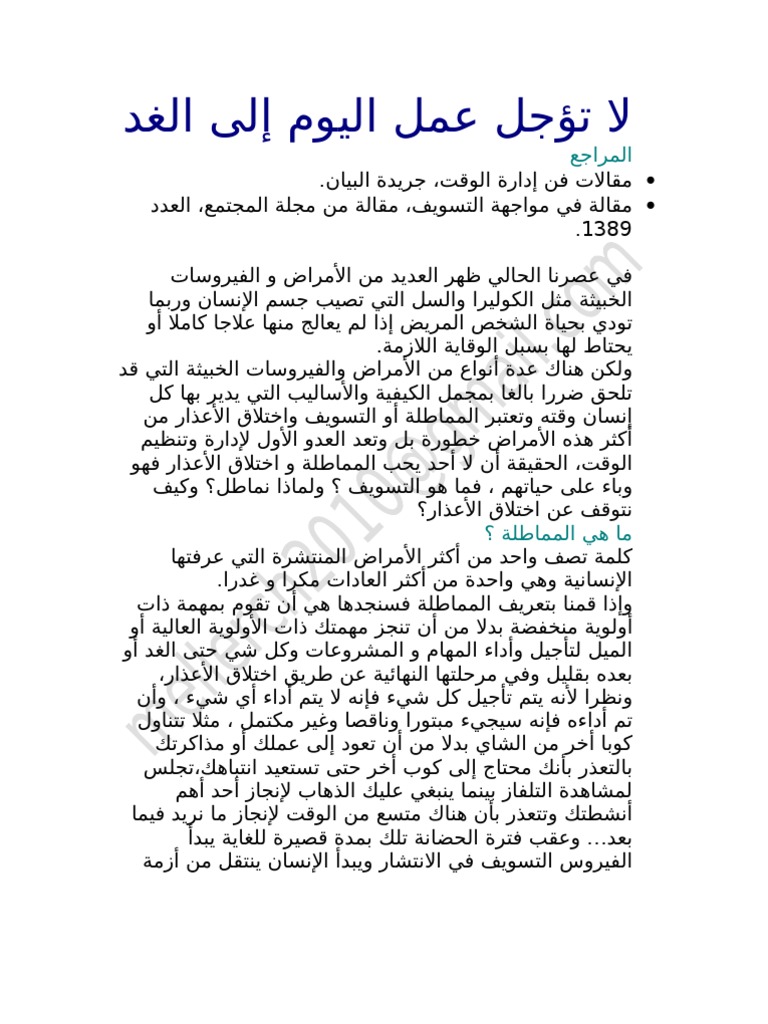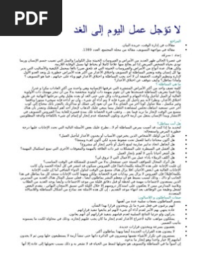 لا تؤجل عمل اليوم الى الغد اسلوب