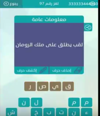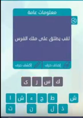 لقب يطلق على ملك الفرس اول حرف ك س ئل يونيو 21 2016 بواسطة باحث اجابة 27k نقاط 5 إجابة 95 9k مشاهدة. حل لغز لقب يطلق على ملك الفرس. حل لغز لقب يطلق على ملك الفرس من 4 حروف من ألغاز لعبة وصله كلمات م تقاطعه لغز رقم 45 مرحله معلومات عامه يسر موسوعه عالم الحلول أن ت جيب على سؤال لقب يطلق على ملك الفرس كلمة السر مكونه من أربعه 4 أحرف. حل سؤال لقب يطلق على ملك الرومان من لعبة وصلة المجموعة الحادية عشرة لغز رقم 97 اهلا وسهلا متابعينــــــــا وكما عودناكم اقدم لكم حل جديد من لعبة وصلة اللعبة الشيقة الممتعة استمتع معنا بلعبة الذكاء للكبار جميلة وجديدة.