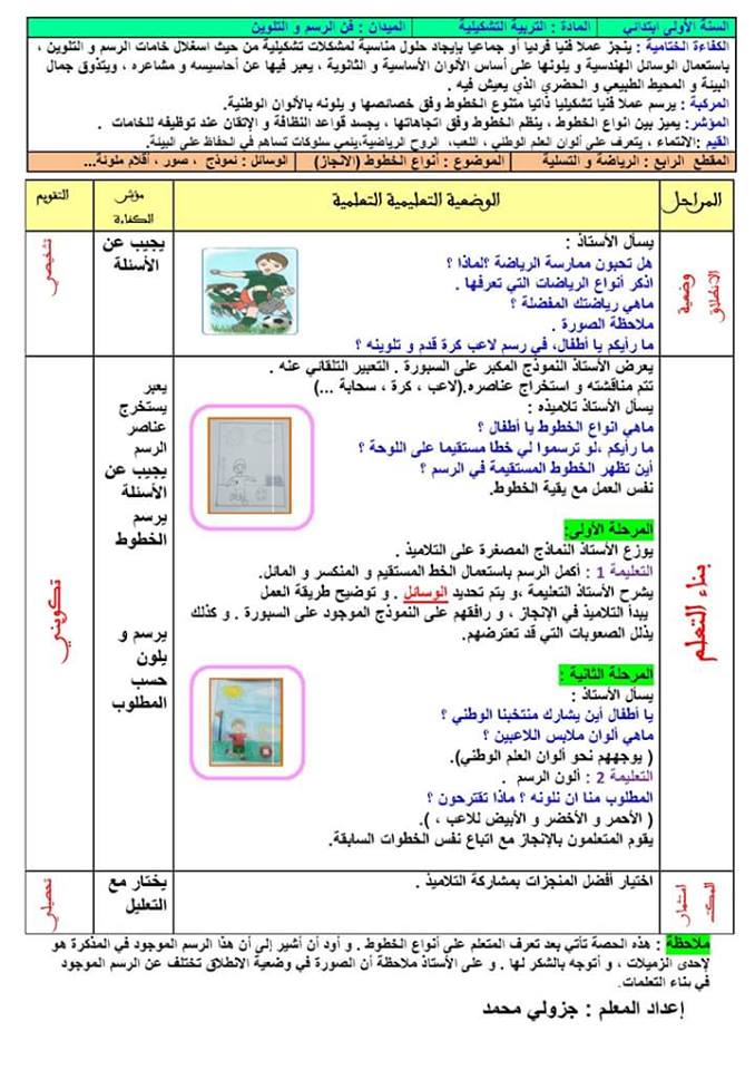مذكرة أنواع الخطوط السنة الاولى ابتدائي الجيل الثاني